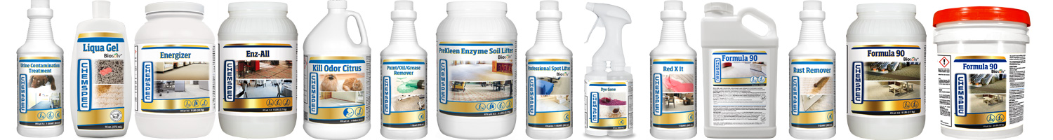 Компанія Chemspec випустила безліч різних засобів для хімчистки текстилю та килимових виробів порошкоподібної, рідкої форми. Такі препарати дозволяють ефективно впоратися навіть із застарілими забрудненнями та повернути поверхні виробів презентабельний вигляд. Можуть використовуватись як професійними клінерами, так і в побуті.